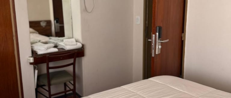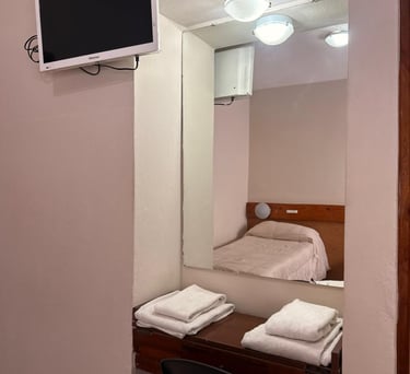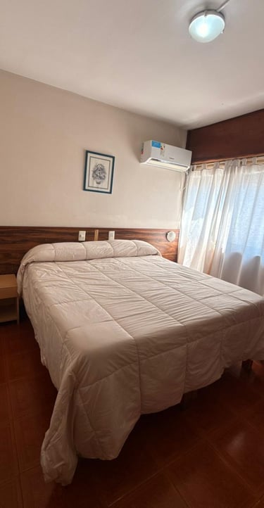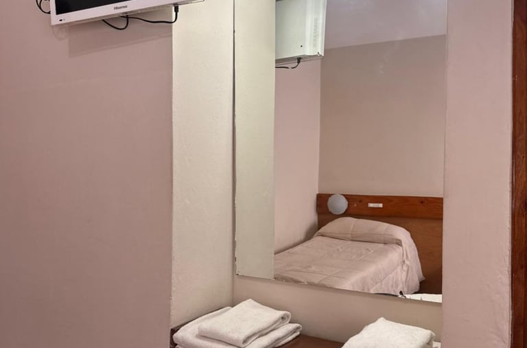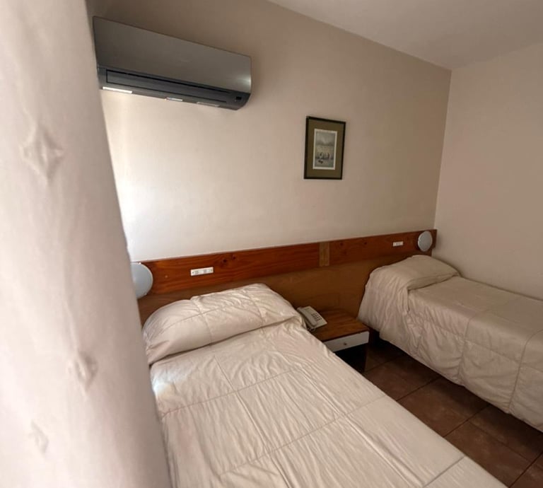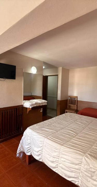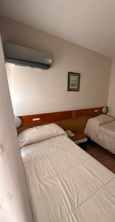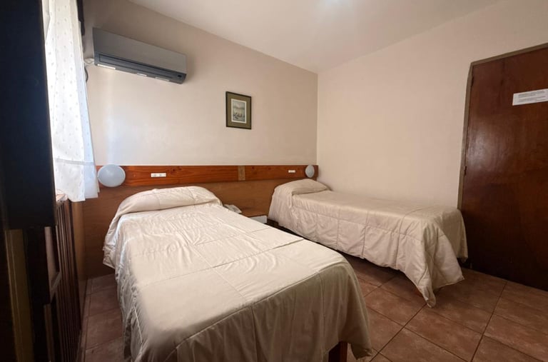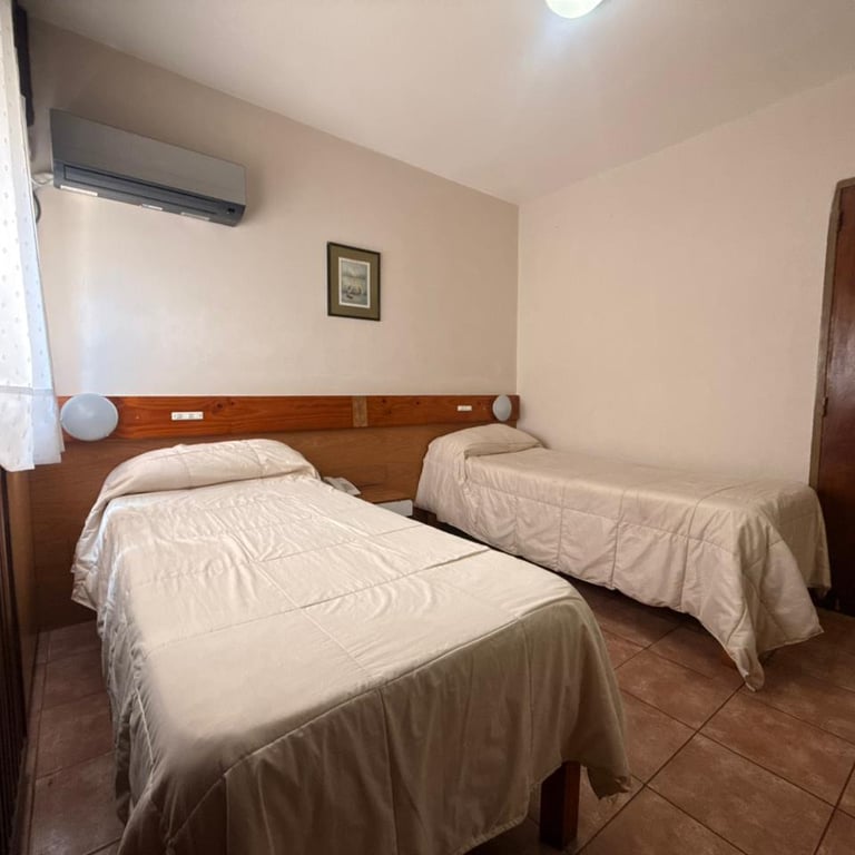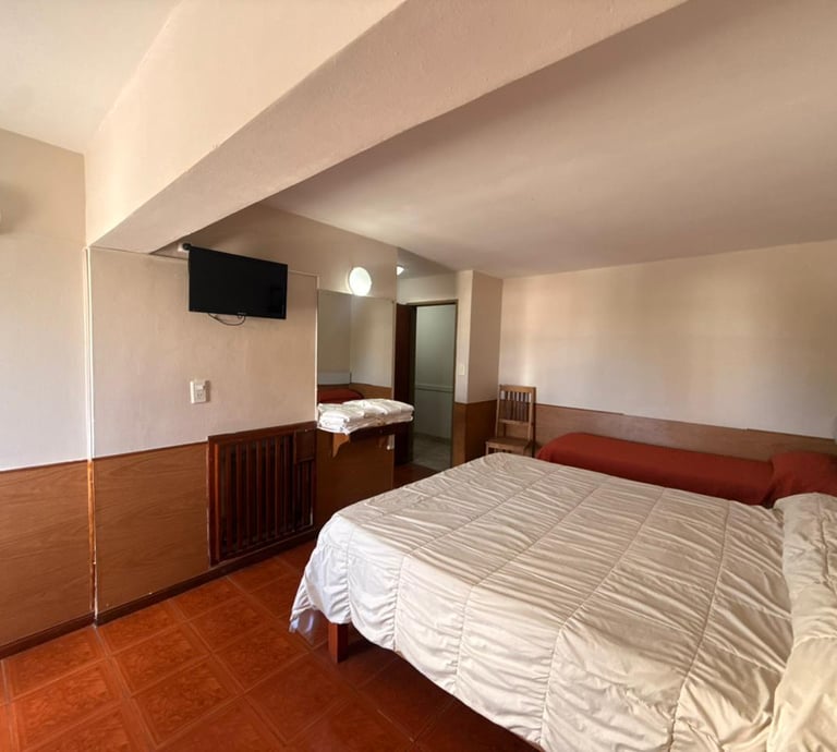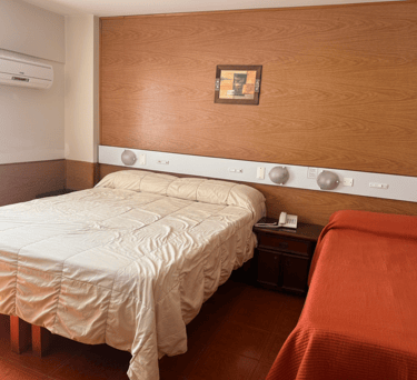 Cómoda habitación para tres personas con cama matrimonial, cama individual, aire acondicionado, Tv, escritorio y Wi-Fi gratuito.
